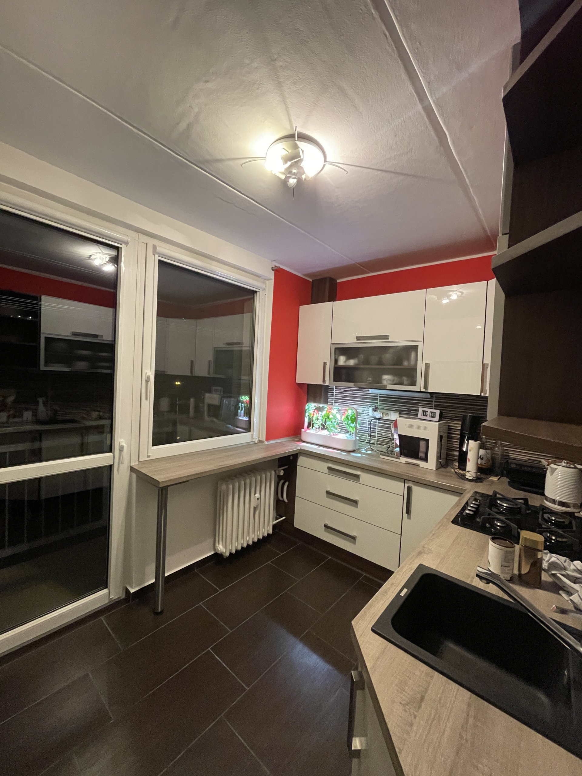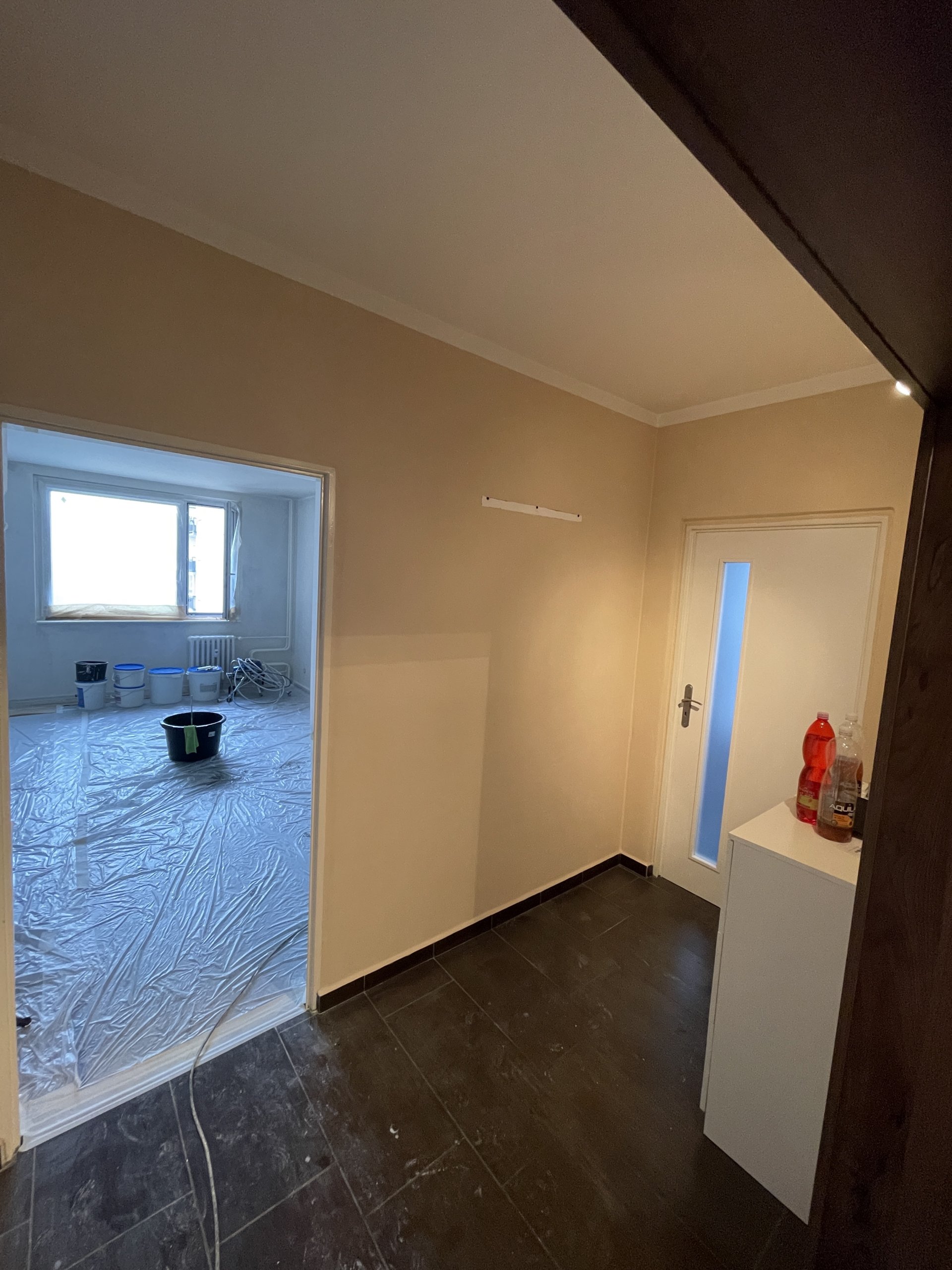 Realizace zahrnovala kompletní výmalbu panelového bytu moderní bezvzduchovou technologií airless, která zajistí dokonale rovnoměrný nátěr bez viditelných tahů. Pro zvýraznění interiéru byla použita dekorativní úprava „Džínovina“, dodávající stěnám originální strukturu a elegantní vzhled připomínající textilní efekt.